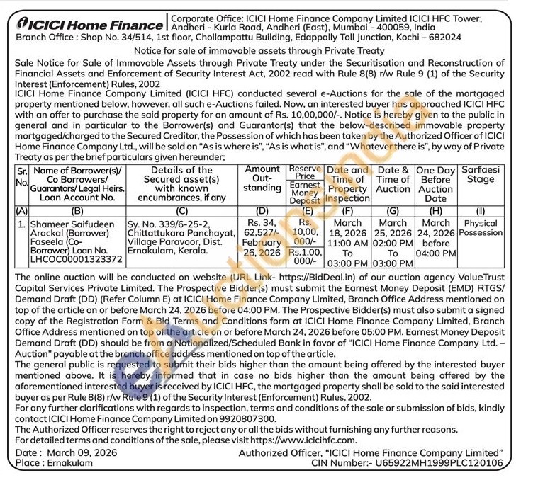 Sy. No. 339/6-25-2, Chittattukara Panchayat, Village Paravoor, Dist. Ernakulam, Kerala