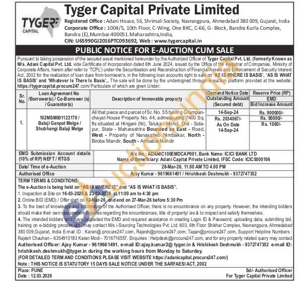 All that piece and parcel of Sr. No. 55 having Grampan-chayat House Property No. 44, admeasuring 7400 Sq. fts situated at Hingani (Ni), Taluka - Mohol, Dist-Sola-pur, State Maharashtra Bounded as East Road, West Property of Nanasaheb Nimbalkar, North Biroba Mandir, South-Ambabai Mandir