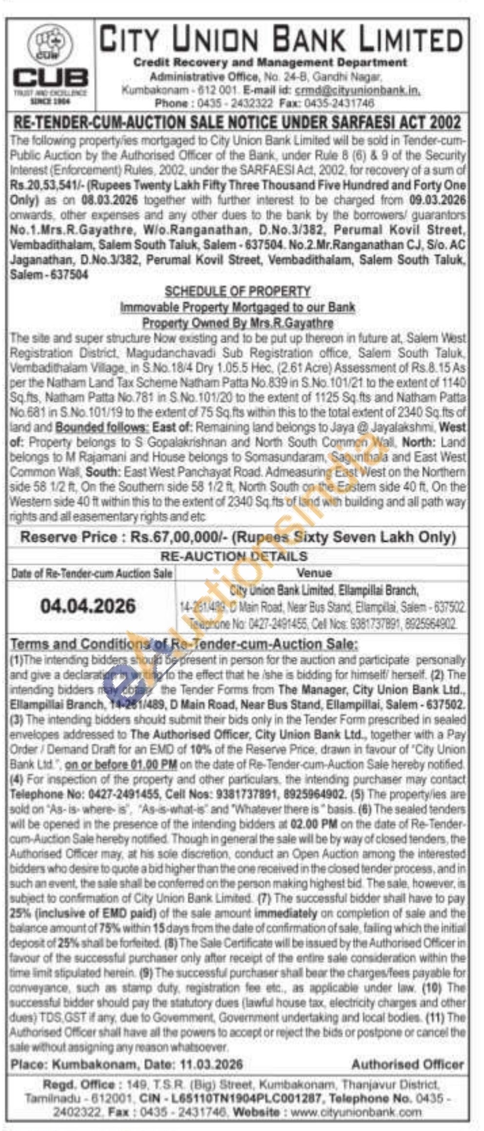 The site and super structure Now existing and to be put up thereon in future at, Salem West Registration District, Magudanchavadi Sub Registration office, Salem South Taluk Vembadithalam Village, in S.No. 18/4 Dry 1.05.5 Hec. (2.61 Acre) Assessment of Rs.8.15 As per the Natham Land Tax Scheme Nathan Patta No.839 in S.No. 101/21 to the extent of 1140 Sq.fts, Natham Patta No.781 in S.No. 101/20 to the extent of 1125 Sq.fts and Natham Patta No.681 in S.No. 101/19 to the extent of 75 Sq fts within this to the total extent of 2340 Sq.fts of land and Bounded follows: East of: Remaining land belongs to Jaya Jayalakshmi, West of: Property belongs to S Gopalakrishnan and North South Common Wall, North: Land belongs to M Rajamani and House belongs to Somasundaram, Sagunthala and East West Common Wal, South: East West Panchayat Road. Admeasuring East West on the Northern side 58 1/2 ft. On the Southern side 58 1/2 ft. North South on the Eastem side 40 ft. On the Western side 40 ft within this to the extent of 2340 Sq. fts of land with building and all path way rights and all easementary rights and etc