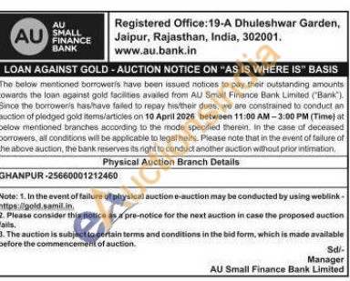 AU Small Finance Bank Gold Auctions Auction in Jaipur