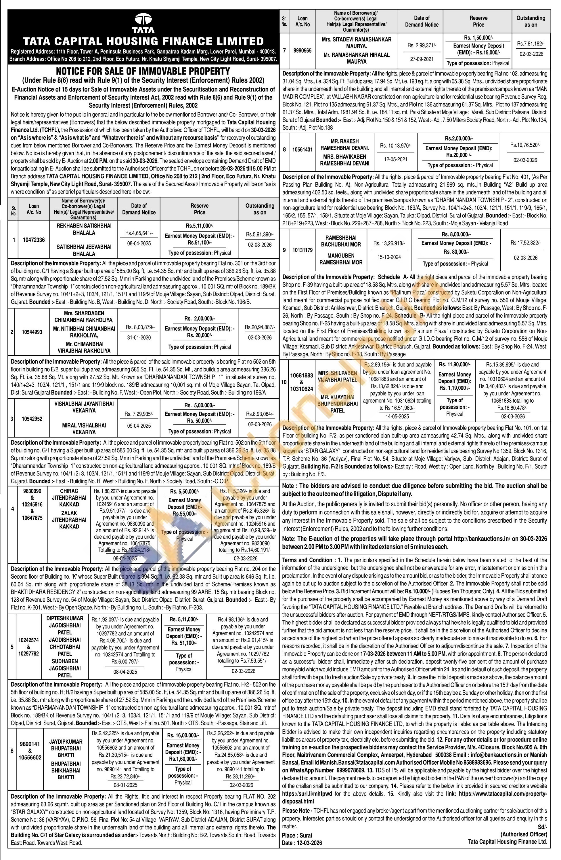 Schedule A- All the right piece and parcel of the immovable property bearing Shop no. F-39 having a built-up area of 18.58 Sq. Mtrs, along with share in undivided land admeasuring 5.57 Sq. Mtrs. located on the First Floor of Premises/Building known as "Platinum Plaza" constructed by Suketu Corporation on Non-Agricultural land meant for commercial purpose notified under G.I.D.C bearing Plot no. C.M/12 of survey no. 556 of Mouje Village: Kosmadi, Sub District: Ankleshwar, District: Bharuch, Gujarat. Bounded as follows: East: By Passage, West: By Shop no. F-26, North: By Passage, South: By Shop no. F-24, Schedule B- All the right piece and parcel of the immovable property bearing Shop no. F-25 having a built-up area of 18.58 Sq. Mtrs, along with share in undivided land admeasuring 5.57 Sq. Mtrs. located on the First Floor of Premises/Building known as "Platinum Plaza" constructed by Suketu Corporation on Non-Agricultural land meant for commercial purpose notified under G.I.D.C bearing Plot no. C.M/12 of survey no. 556 of Mouje Village: Kosmadi, Sub District: Ankleshwar, District: Bharuch, Gujarat. Bounded as follows: East: By Shop No. F-24, West: By Passage, North: By Shop no. F-38, South: By Passage