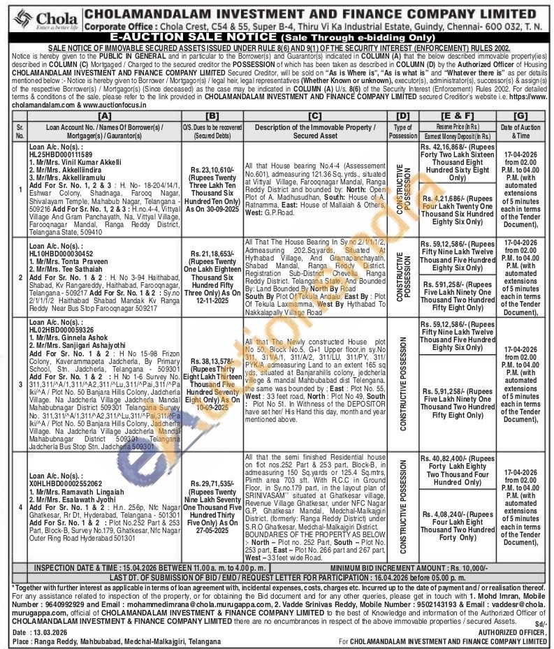 Contact No: Mohd Imran, Mobile Number: 9640992929 / Vadde Srinivas Reddy, Mobile Number: 9502143193