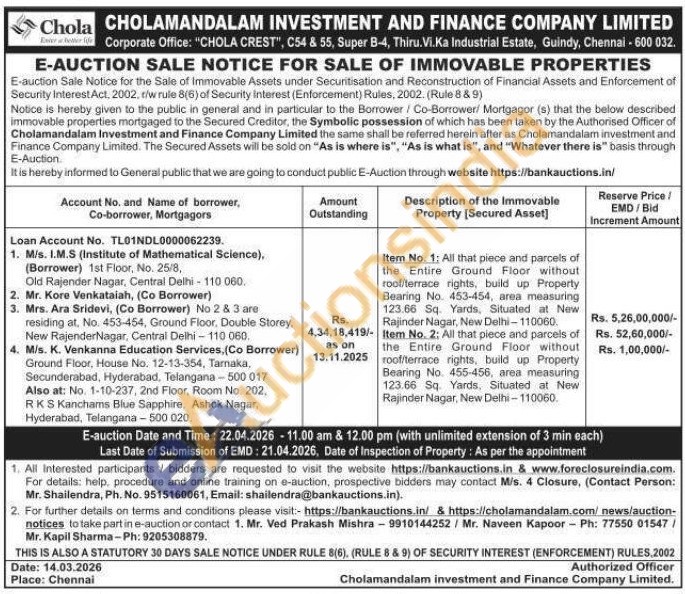 Item No. 1; All that piece and parcels of the Entire Ground Floor without roof/terrace rights, build up Property Bearing No. 453-454, area measuring 123.66 Sq. Yards, Situated at New Rajinder Nagar, New Delhi-110060.