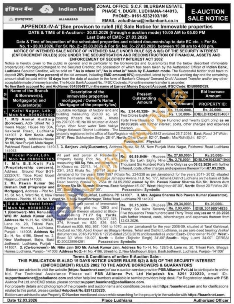 All the part and parcel of Immovable property being plot no. 128/3 and construction thereon situated at Block-B.measuring 71.77 Sq. Yards. comprised in Khasra no. 376,377, 378, 12.03.2026. 374, Khewat no. 820, 836, 930, Khatauni no.935, 953, 957, 1064 to 1070, as per Jamabandi for the year 2008-09, situated at Taraf Gahlewal, Hadbast no. 166, Abadi known as Bhagya Homes, Tehsil and District Ludhiana, as per sale deed bearing Vasika/document no. 2018-19/106/1/12726 dated 25/02/2019 and bounded as under: East:-Other owner 19-00", West:-Road 30° Wide 19-00", North: Seller (Tejinder Singh) 34-00", South: Vijay Luxmi 34-00". CERSAI ID:200228964281