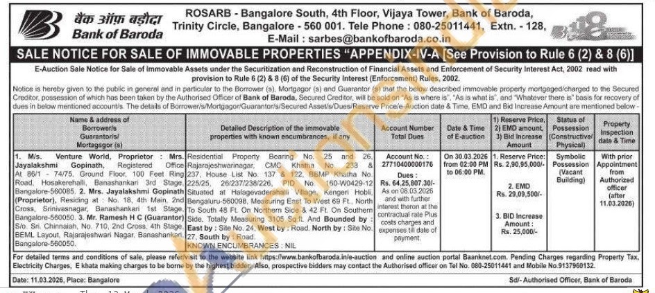Residential Property Bearing No. 25 and 26, Rajarajeshwarinagar, CMC Khatha No. 238 & 237, House List No. 137 & 122, BBMP Khatha No. 225/25, 26/237/238/226, PID No 160-W0429-12 Situated at Halagevaderahalli Village, Kengeri Hobli. Bengaluru-560098, Measuring East To West 69 Ft., North To South 48 FL. On Northern Side & 42 Ft. On Southern Side. Totally Measuring 3105 Sq.ft. And Bounded by . East by: Site No. 24, West by: Road, North by: Site No. . 27, South by: Road.