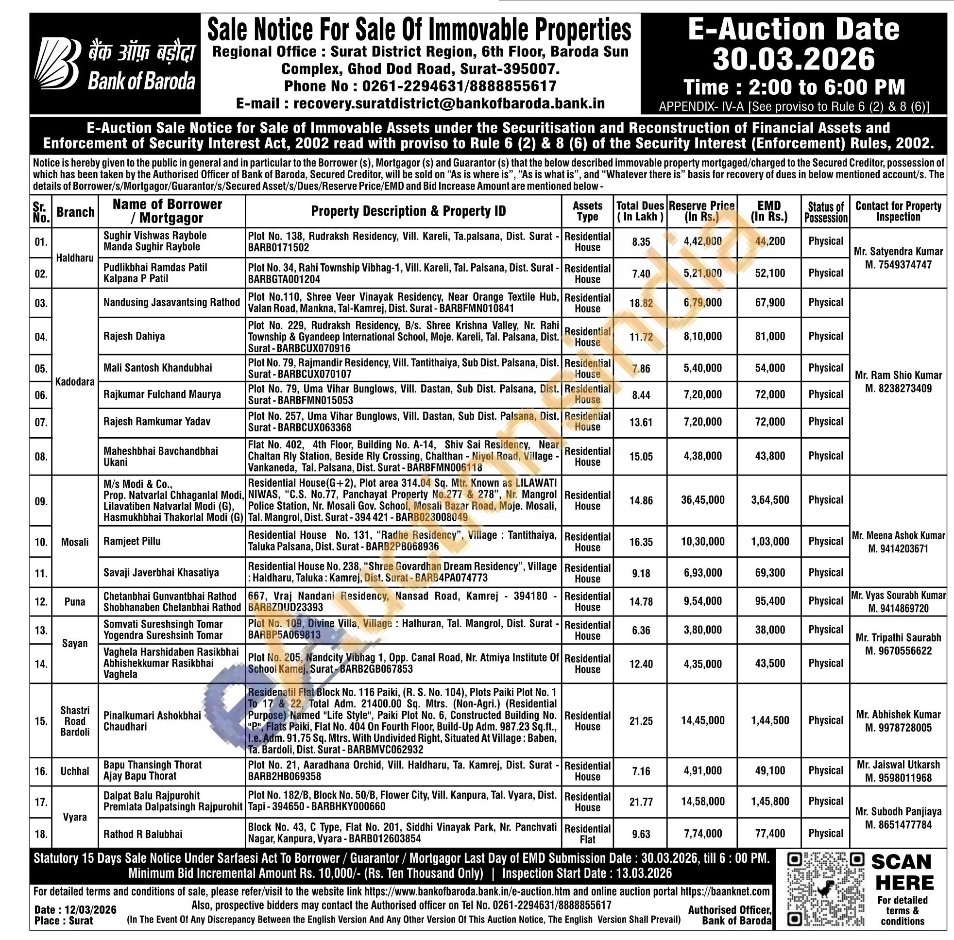 Residential House(G+2), Plot area 314.04 Sq. Mtr. Known as LILAWATI NIWAS, “C.S. No.77, Panchayat Property No.277 & 278”, Nr. Mangrol Police Station, Nr. Mosali Gov. School, Mosali Bazar Road, Moje. Mosali, Tal. Mangrol, Dist. Surat- 394 421 - BARB023008049