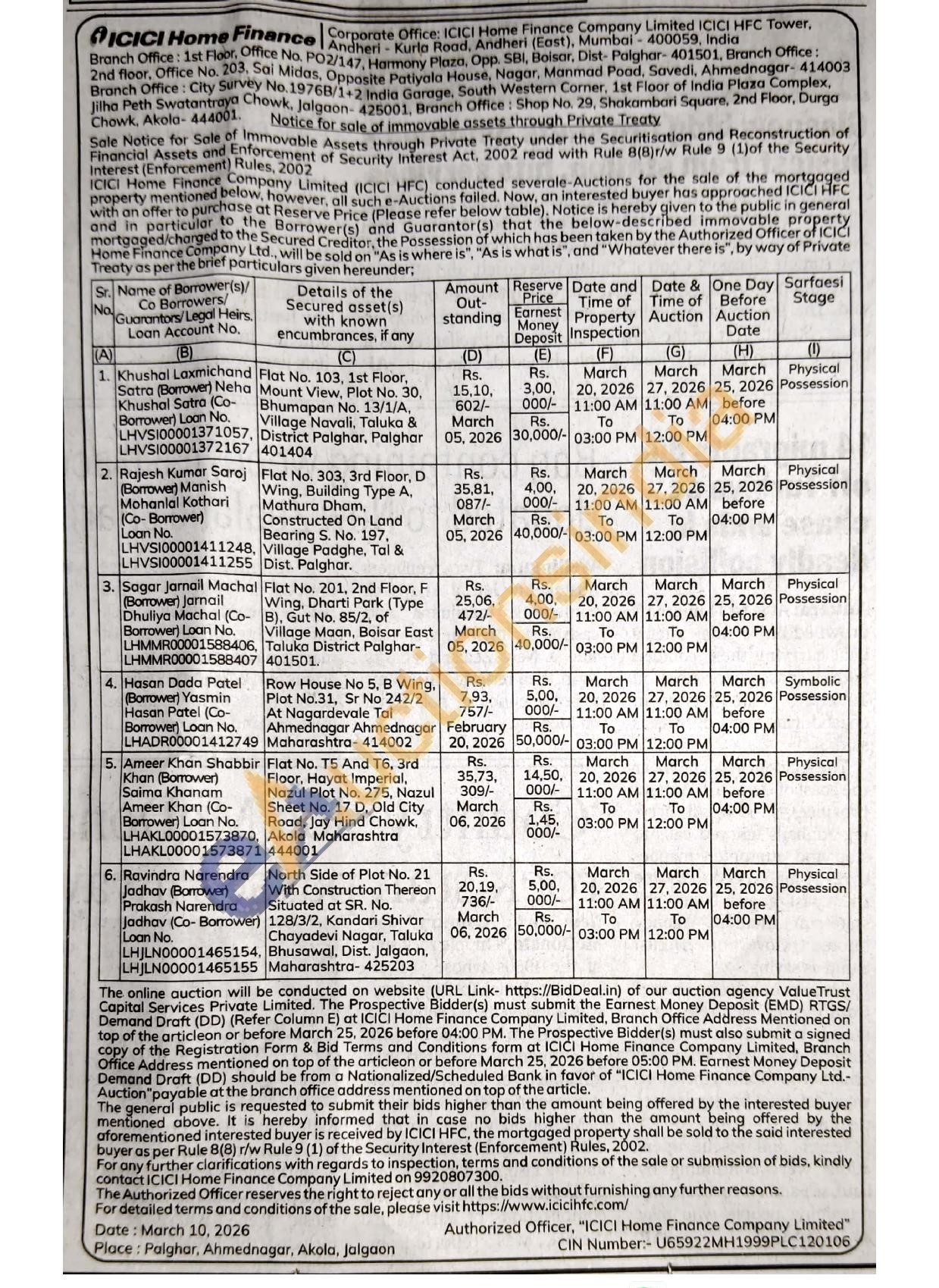 Flat No. T5 And T6, 3rd Floor, Hayat Imperial, Nazul Plot No. 275, Nazul Sheet No. 17 D, Old City Road, Jay Hind Chowk, Akola Maharashtra 444001
