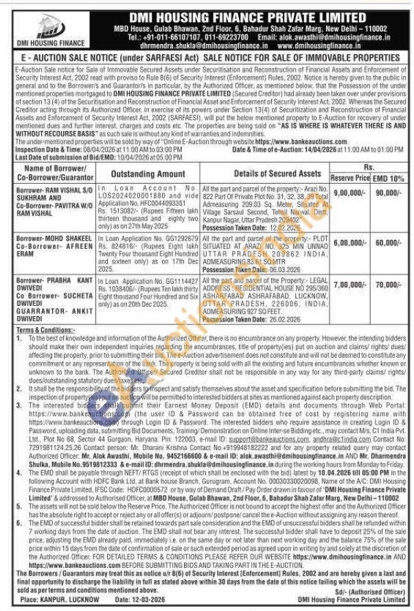All the part and parcel of t of the property:- Arazi No. 822 Part Of Private Plot No. 31, 32, 38, 39 Total Admeasuring 209.03 Sq. Meter, Situated At Village Sarsaul Second, Tehsil Narwal. Distt. Kanpur Nagar, Uttar Pradesh 209402 Possession Taken Date: 12.02.2026