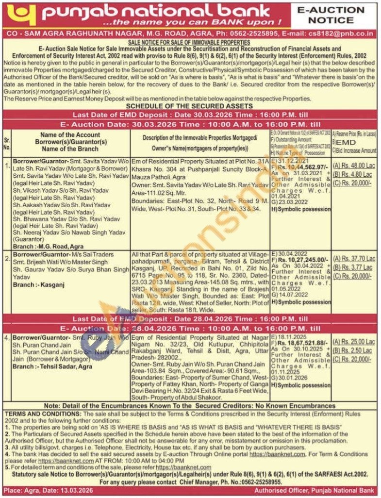 Eqm of Residential Property Situated at Nagar Nigam No. 32/23, Old Kutlupur, Chhipitola Rakabganj Ward, Tehsil & Distt, Agra, Uttar Pradesh-282002. Owner-Smt. Ruby Jain Wio Sh. Puran Chand Jain Area-103.84 Sqm., Covered Area:-90.61 Sqm., Boundaries: East-Property of Sumer Chand, West Property of Fattey Khan, North-Property of Ganga Devi Bearing H.No. 32/24 Exit & Rasta 6 Feet Wide,