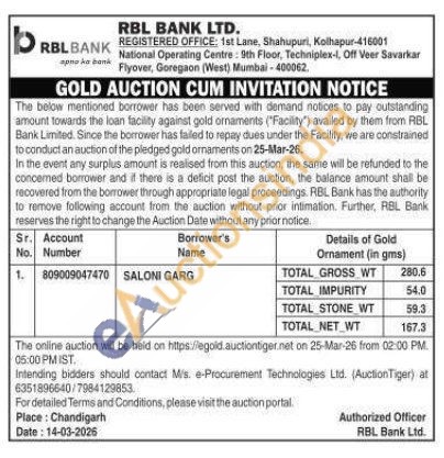 RBL Bank Gold Auctions Auction in Chandigarh