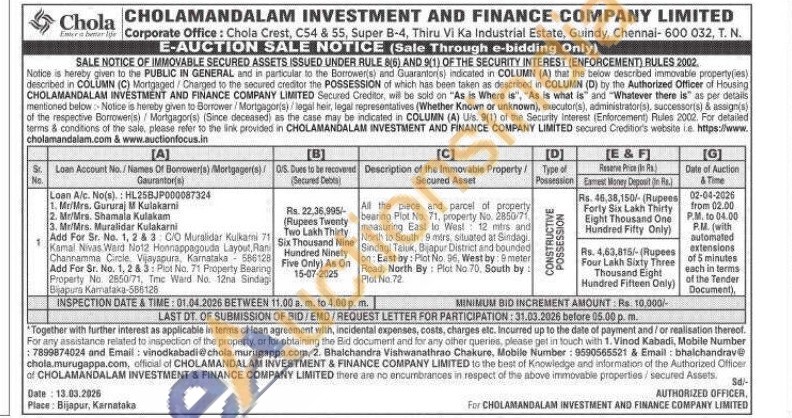 All the piece and parcel of property bearing Plot No. 71, property No. 2850/71 measuring East to West 12 mins and North to South 9 mirs, situated at Sindagi. Sindagi Taluk, Bijapur District and bounded on East by: Plot No 96, West by: meter Road, North By: Plat No 70, South by: Plot No. 72