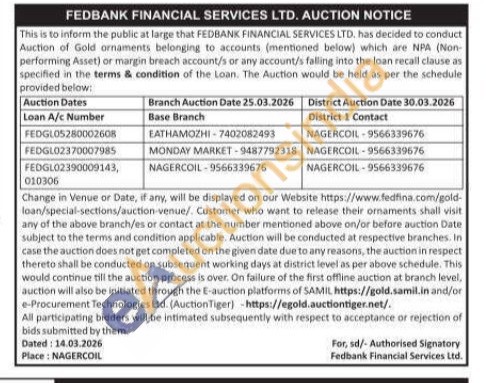 Fedbank Financial Services Ltd Gold Auctions Auction in Chennai