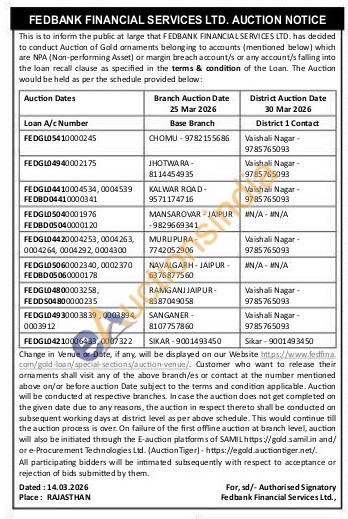 Fedbank Financial Services Ltd Gold Auctions Auction in Jaipur