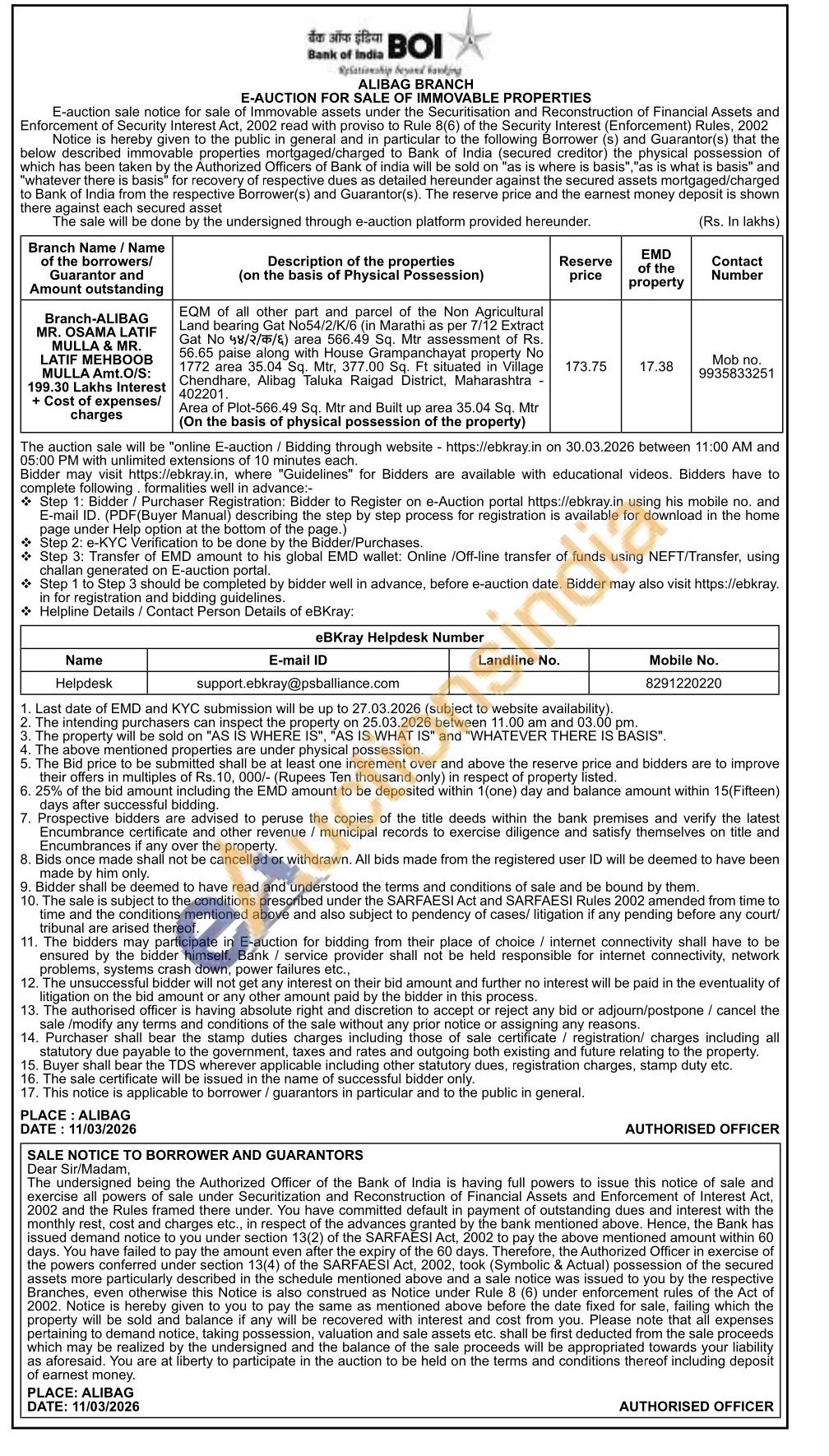EQM of all other part and parcel of the Non Agricultural Land bearing Gat No54/2/K/6 (in Marathi as per 7/12 Extract Gat No ५४/२/क/६) area 566.49 Sq. Mtr assessment of Rs. 56.65 paise along with House Grampanchayat property No 1772 area 35.04 Sq. Mtr. 377.00 Sq. Ft situated in Village Chendhare, Alibag Taluka Raigad District, Maharashtra-402201. Area of Plot-566.49 Sq. Mtr and Built up area 35.04 Sq. Mtr