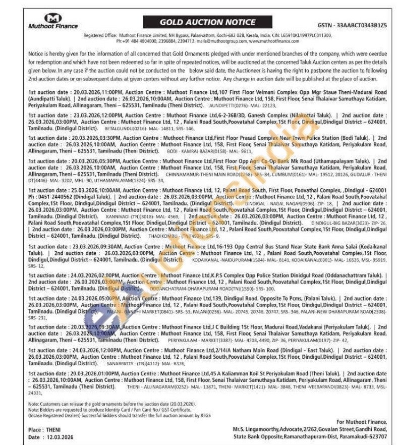 Muthoot Finance Ltd Gold Auctions Auction in Madurai