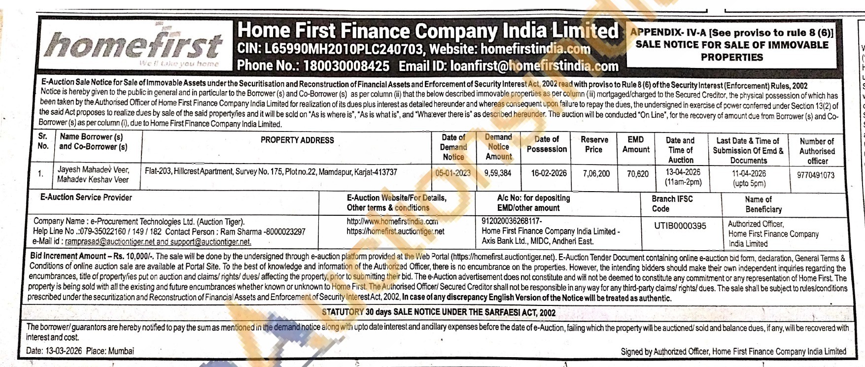 Flat-203, Hillcrest Apartment, Survey No. 175, Plotno.22, Mamdapur, Karjat-413737