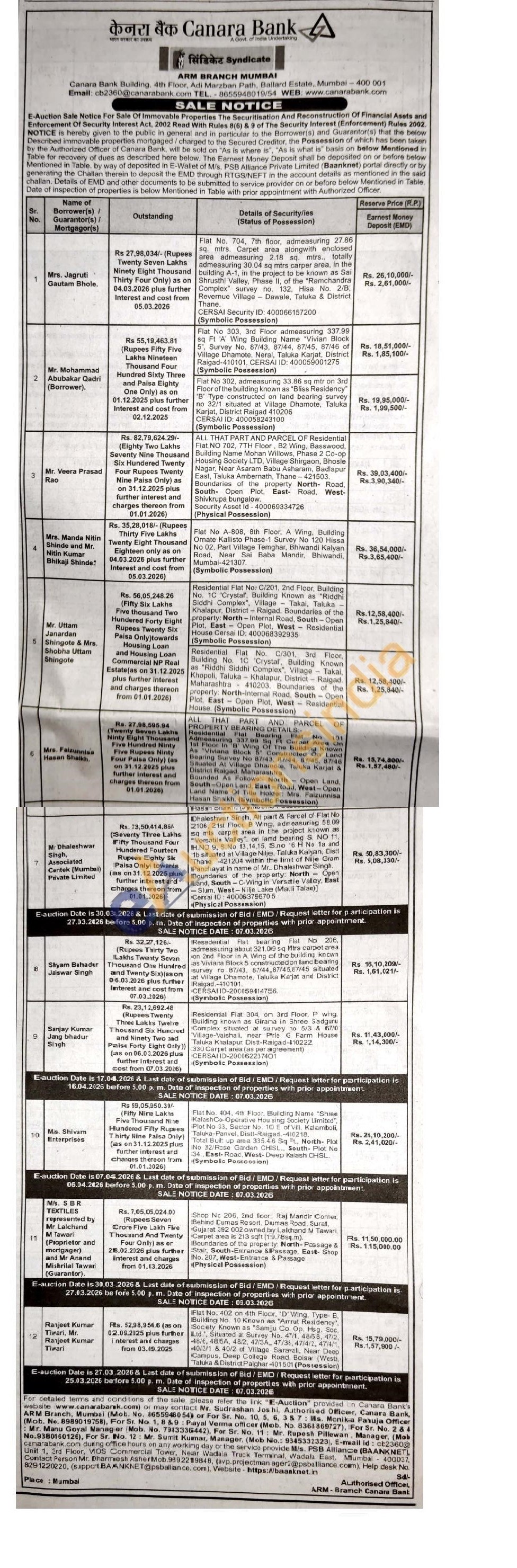 Mr. Sudrashan Joshi, Authorised Officer (Mob. No. 8655948054)) Mr. Sumit Kumar, Manager, (Mob No.: 9345332323)