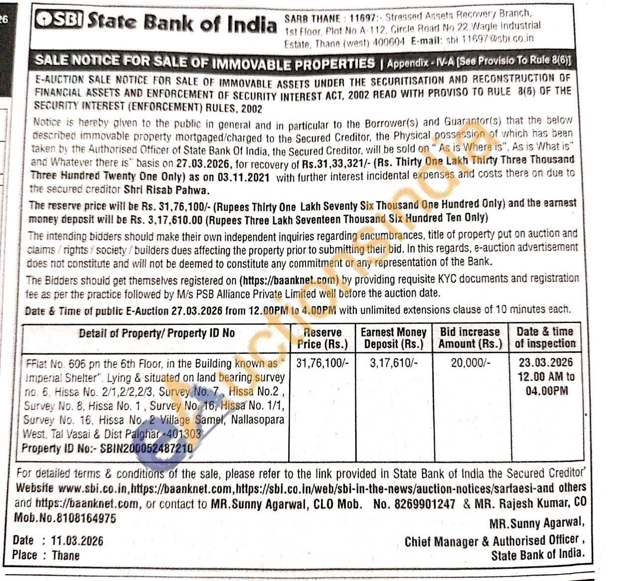contact to MR. Sunny Agarwal, CLO Mob. No. 8269901247 & MR. Rajesh Kumar, CO Mob. No.8108164975