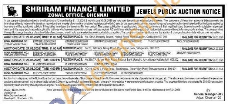 Shriram Finance Ltd Gold Auctions Auction in Cuddalore