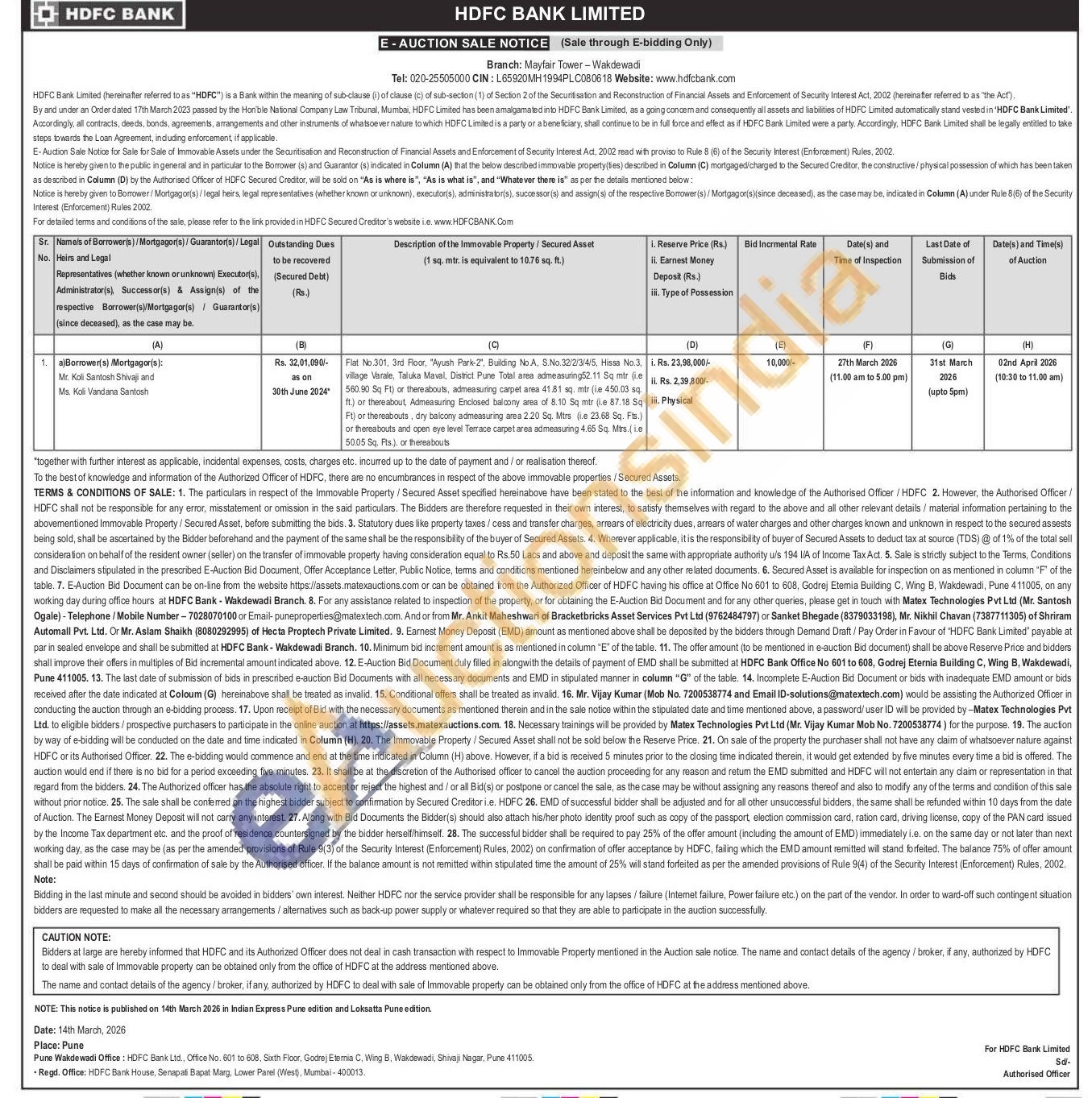 Flat No 301. 3rd Floor, "Ayush Park-2" Building No A, S. No.32/2/3/4/5, Hissa No.3, Village Vanale, Taluka Maval, District Pune Total area admeasuring52.11 Sq mtr (e 560.90 Sq Ft) or thereabouts, admeasuring carpet area 41.81 sq. mtr (le 450.03 sq ft) or thereabout Admeasuring Enclosed balcony area of 8 10 S4 mtr e 87 18 Sq Fti or theseabouts, dry balcony admeasuring area 2.20 Sq. Mtrs (e 23.68 Sq. Fts.) or thereabouts and open eye level Terrace carpet area admeasuring 4.65 5q. Mts (ie 50.05 Sq Fts) or thereabouts