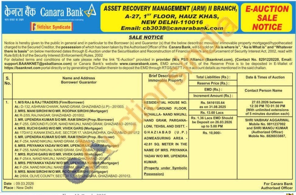 RESIDENTIAL HOUSE NO. F-255, GROUND FLOOR, MOHALLA-NAND NIKUNJ, NAND GRAM, PARGANA- LONI, TEHSIL AND DISTT. - GHAZIABAD (U.P.) ADMEASURING AREA 42.81 SQ. METER IN THE NAME OF MRS. PRIYANKA YADAV W/O MR. UPENDRA KUMAR (Property under Symbolic Possession)