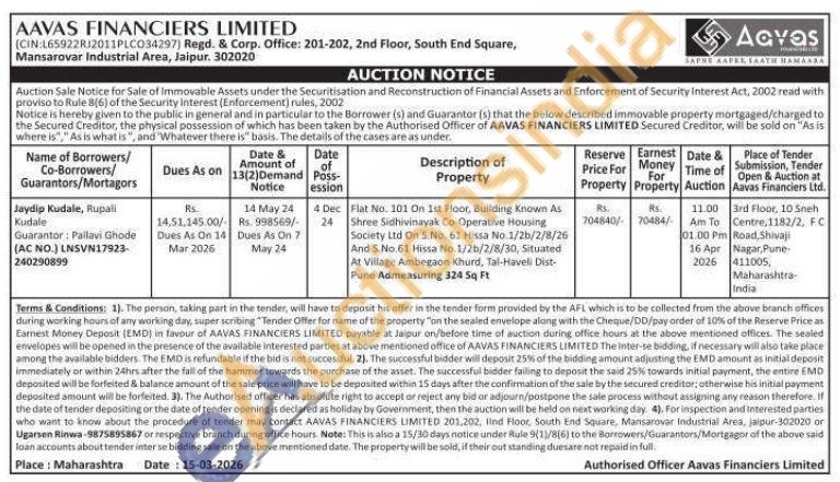 Flat No. 101 On 1st Floor, Building Known As Shree Sidhivinayak Co-Operative Housing Society Ltd On S.No. 61 Hissa No. 1/26/2/8/26 And S.No.61. Hissa No. 1/2b/2/8/30, Situated At Village Ambegaon Khurd, Tal-Haveli Dist-Pune Admeasuring 324 Sq Ft