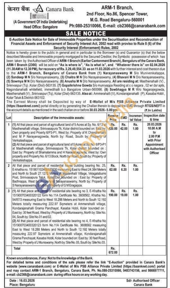 All that piece and parcel of residential house building bearing No. 25. E-khatha no. 151901102400100030 measuring East to West 24.384 Meters and North to South 27.1272 Meters at Mastenhalli Village, Velagalaburre Post, Srinivasapura Taluk, Kolar Dist bounded on: East by: Property of Badhrappa, West by: Property of Narayanaswamy, North by: Property of S Narayanaswamy, South by: Property of G M Eragappa.