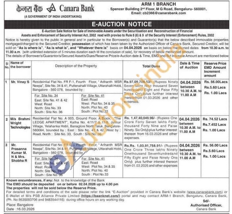 Residential Flat No. A 003, Ground Floor, A Block, "The LEDGE APARTMENT", Katha No. 4/11/7 & 11/8, Jakkur Village, Yelahanka Hobli, Banaglore North Taluk, Bangalore-560064, bounded by East: Site No. 41 & 42. West by: Road, North: Site No. 33, South Site No. 36.