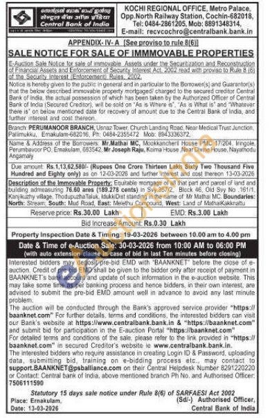 Contact no 8891348314. E-mail: recvcochro@centralbank.bank.in