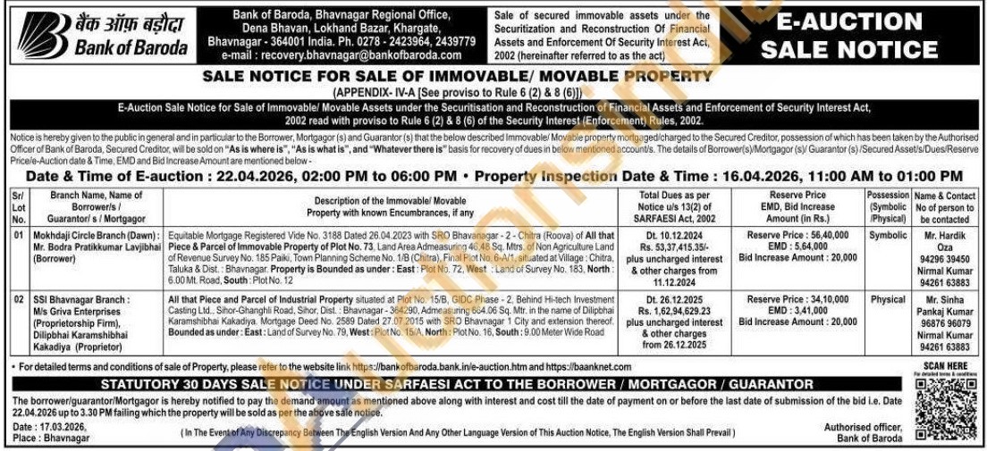 All that Piece and Parcel of Industrial Property situated at Plot No. 15/8, GIDC Phase 2. Behind Hi-tech Investment Casting Ltd., Sihor-Ghanghi Road, Sihor, Dist. Bhavnagar-364290, Admeasuring 664.06 Sq. Mtr. in the name of Dilpbhai Karamshibhai Kakadiya. Mortgage Deed No. 2589 Dated 27.07.2015 with SRO Bhavnagar 1 City and extension thereof Bounded as under: East: Land of Survey No. 79, West: Plot No. 15/A, North: Plot No. 16, South: 9.00 Meter Wide Road
