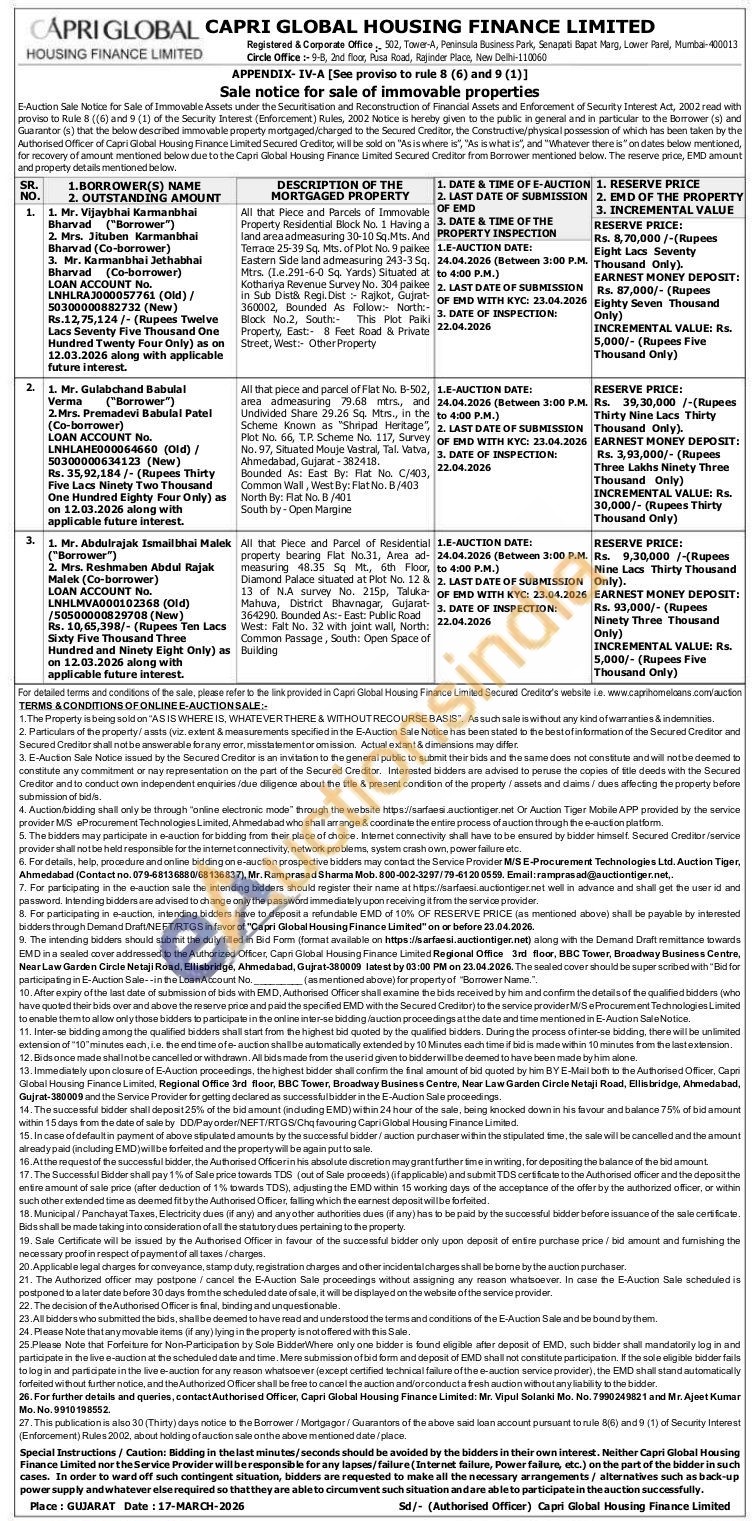 Authorised Officer Mr. Vipul Solanki Mobile No : 7990249821 / Mr. Ajeet Kumar Mobile No : 9910198552