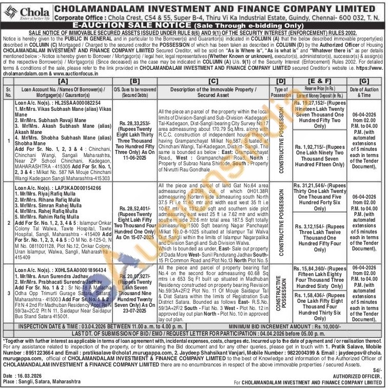All the piece and parcel of property bearing flat No.4 on the second floor admeasuring 60.68 Sq mtrs ie 653 Sq Ft built up situated in Madhuban Residency constructed on property bearing Revision No.59/3A+2F/2 Plot No. 11 Of Mouje Saidapur Tal & Dist Satara within the limits of Registration Sub District Satara. Bounded as follows East- R.S.No. 59/3A+2F/2 South-Flat No. 3 West-Plot No. 12 in approved lay out plan North - Plot No. 10 in approved lay out plan