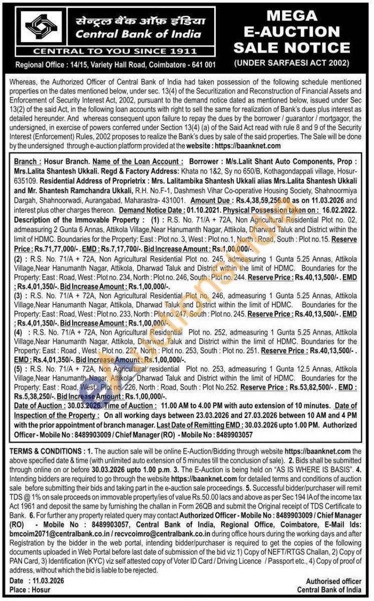 R.S. No. 71/A+ 72A, Non Agricultural Residential Plot no. 252, admeasuring 1 Gunta 5.25 Annas, Attikola Village, Near Hanumanth Nagar, Attikola, Dharwad Taluk and District within the limit of HDMC. Boundaries for the Property: East: Road, West: Plot no. 227, North: Plot no. 253, South: Plot no. 251.