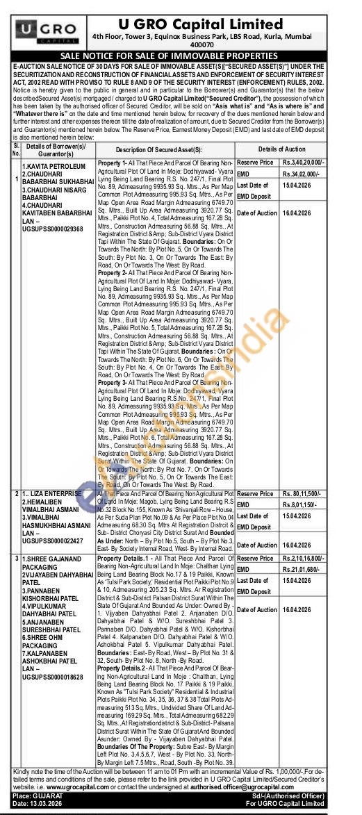 That Piece And Parcel Of Bearing NonAgricultural Plot Of Land In Moje: Magob, Lying Being Land Bearing R.S No.32 Block No. 155. Known As Shivanjali Row-House, As Per Suda Plan Plot No.09 & As Per Place Plot No.04 Admeasuring 68.30 Sq. Mtrs At Registration Distrcit & Sub-District Choryasi City District Surat And Bounded As Under: North-By Plot No.5, South- By Plot No.3. East- By Society Internal Road, West- By Internal Road