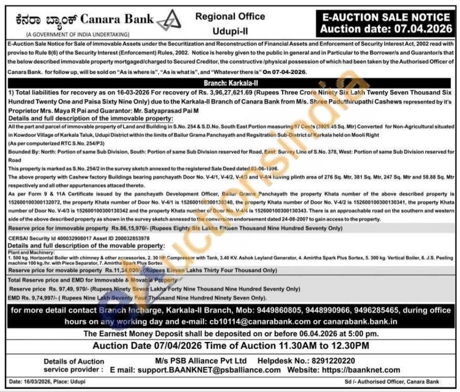 contact Branch Incharge, Karkala-II Branch, Mob: 9449860805, 9448990966, 9496285465,