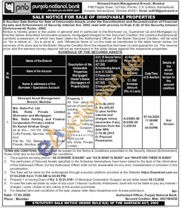Branch Name : Stressed Asset Management Branch : Mumbai