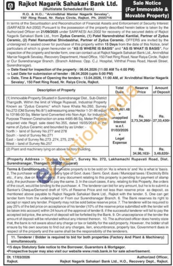 (Property Address: "Zydus Ceramic", Survey No. 272, Lakhamachi Rupavati Road, Dist. Surendranagar, Thangadh 363530 (Gujarat)