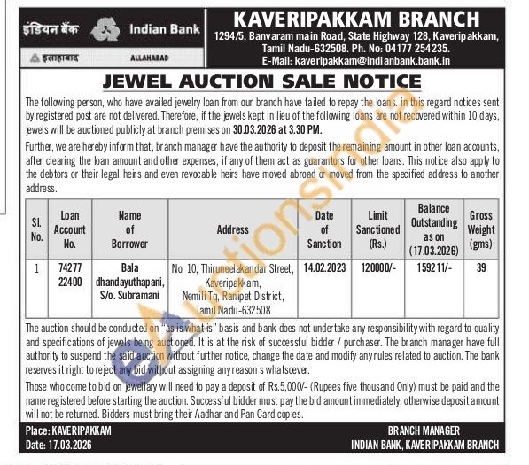 Indian Bank Gold Auctions Auction in Allahabad