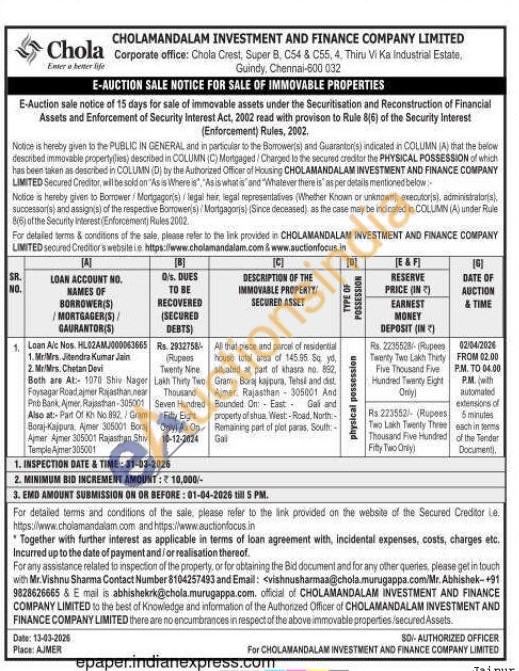 All that piece and parcel of residential house total area of 145.95 Sq yd, situated at part of khasra no. 892, Gram Boraj kajpura, Tehsil and dist, Aymer. Rajasthan 305001 And Bounded On East Gal and property of shua West-Road, North-Remaining part of plot paras, South-Gall