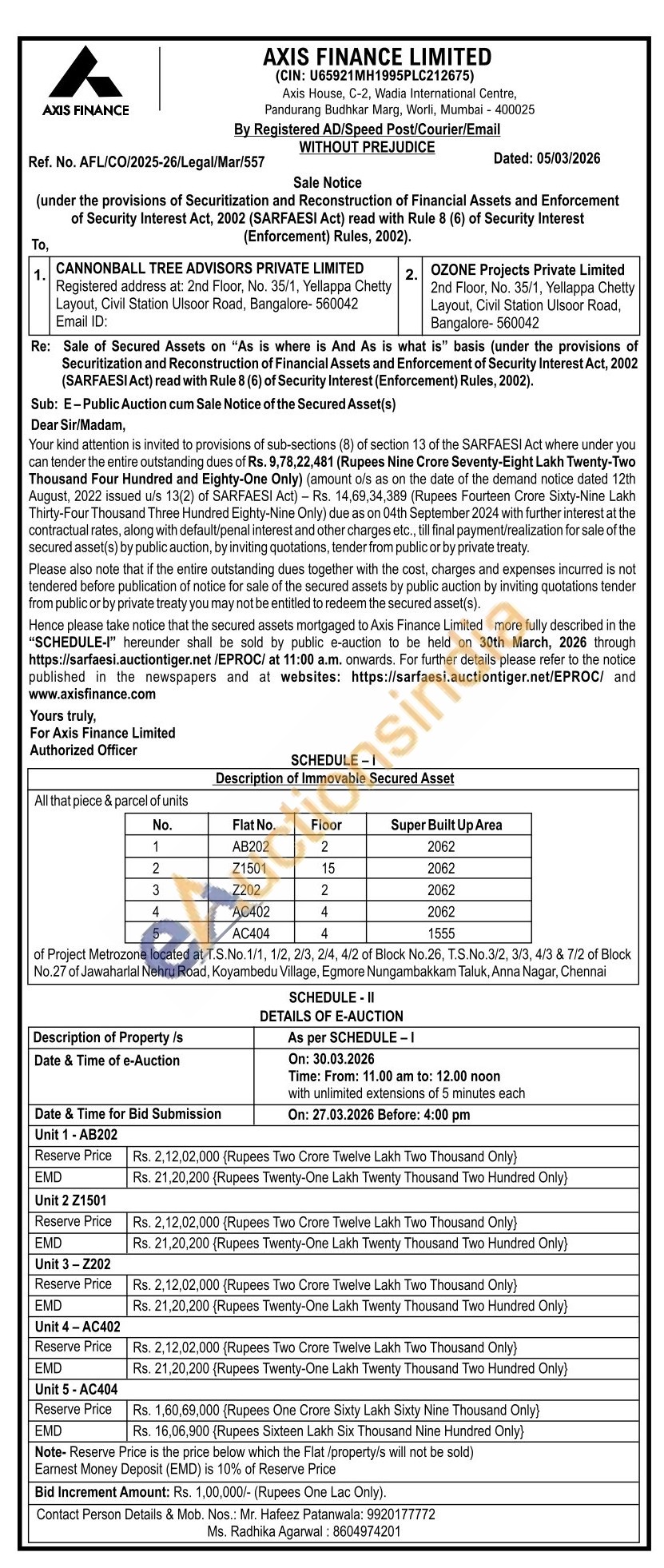 All that piece & parcel of units of Project Metrozone located at T.S.No. 1/1, 1/2, 2/3, 2/4, 4/2 of Block No.26, T.S.No.3/2, 3/3, 4/3 & 7/2 of Block No.27 of Jawaharlal Nehru Road, Koyambedu Village, Egmore Nungambakkam Taluk, Anna Nagar, Chennai
