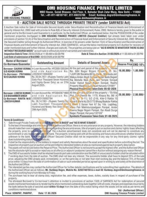 Mr. Kuldeep Dogra, 6283748759 & e-mail ID: Kuldeep dogra@dmihousingfinance.in