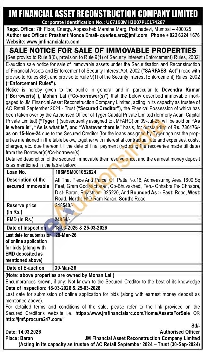 All That Piece And Parcel Of Patta No.16, Admeasuring Area 1600 Sq Feet, Gram Godiyacharan, Gp-Bhuvakhedi, Teh.- Chhabra Ps- Chhabra, Dist-Baran, Rajasthan-325220, And Bounded As :- East: Road, West: Road, North: H/O Ram Karan, South: Road