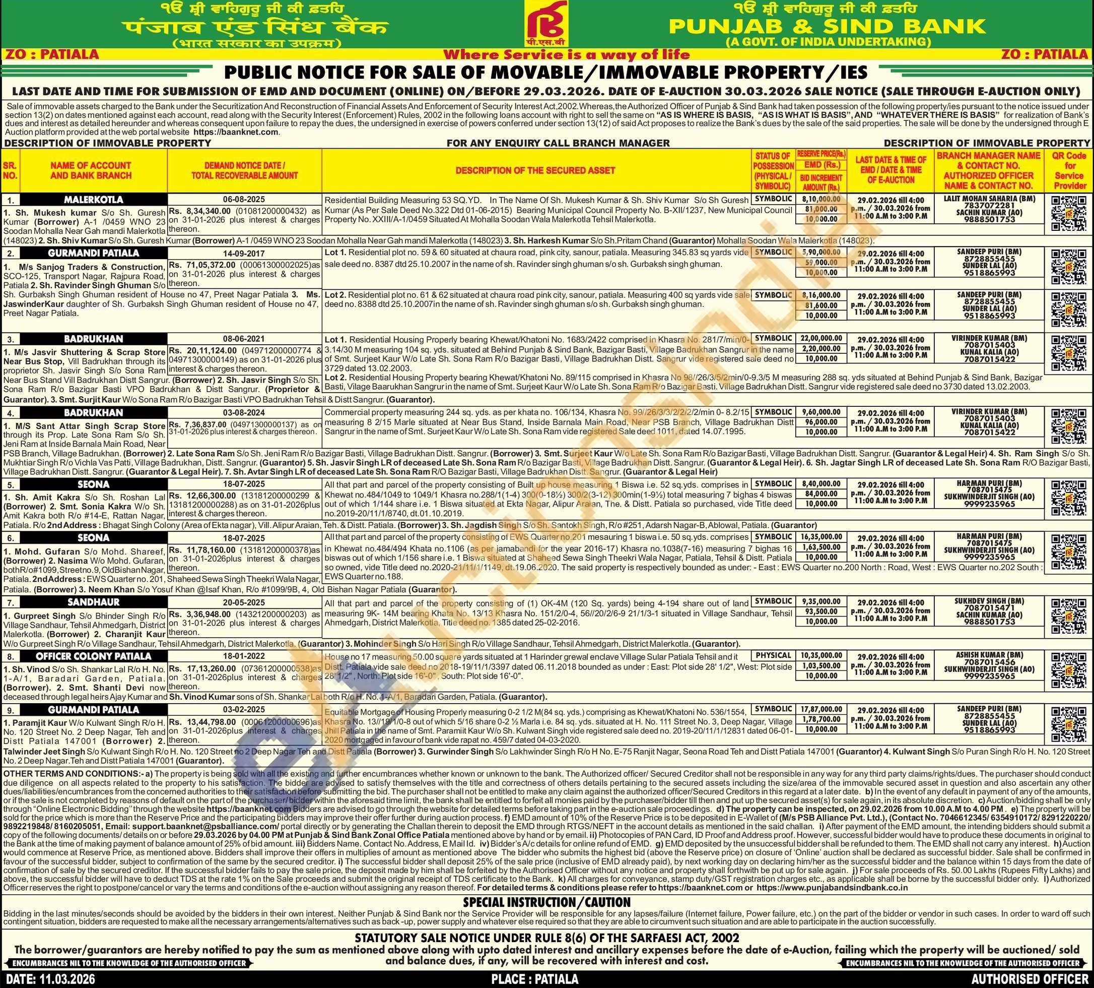 HARMAN PURI (BM) 7087015475 SUKHWINDERJIT SINGH (AO) 9999235965