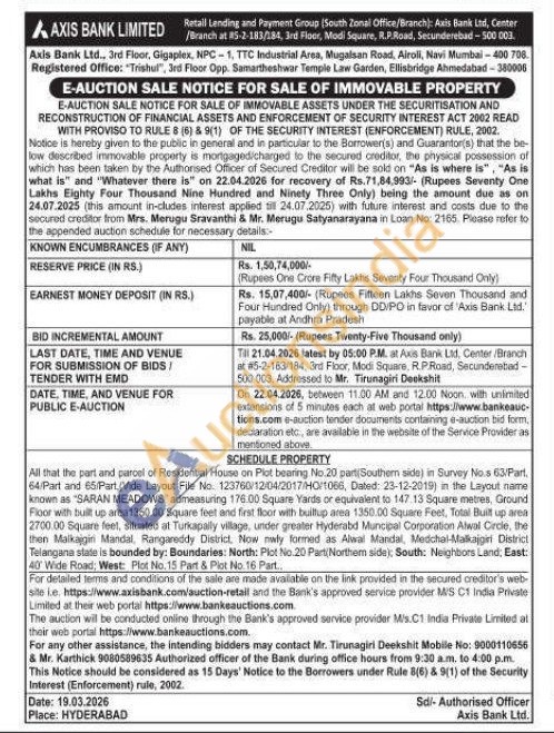contact Mr. Tirunagiri Deekshit Mobile No: 9000110656 & Mr. Karthick 9080589635 Authorized officer