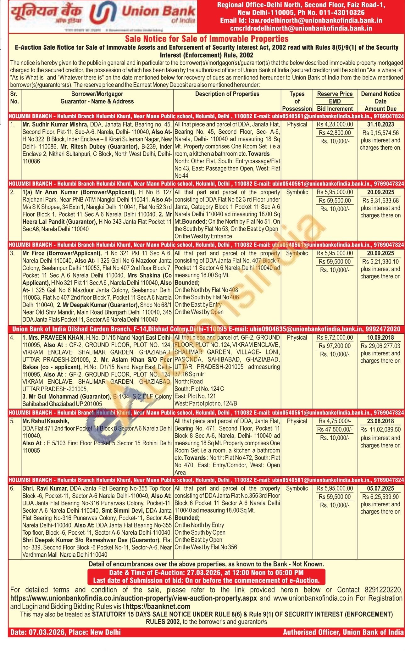 All that piece and parcel of DDA, Janata Flat, Bearing No. 45, Second Floor, Sec- A-6, Narela, Delhi-110040 ad measuring 18 Sq Mt. Property comprises One Room Set ie a room, a kitchen a bathroom etc. Towards North: Other Flat, South: Entry/passage/Flat No 43, East: Passage then Open, West: Flat No 44