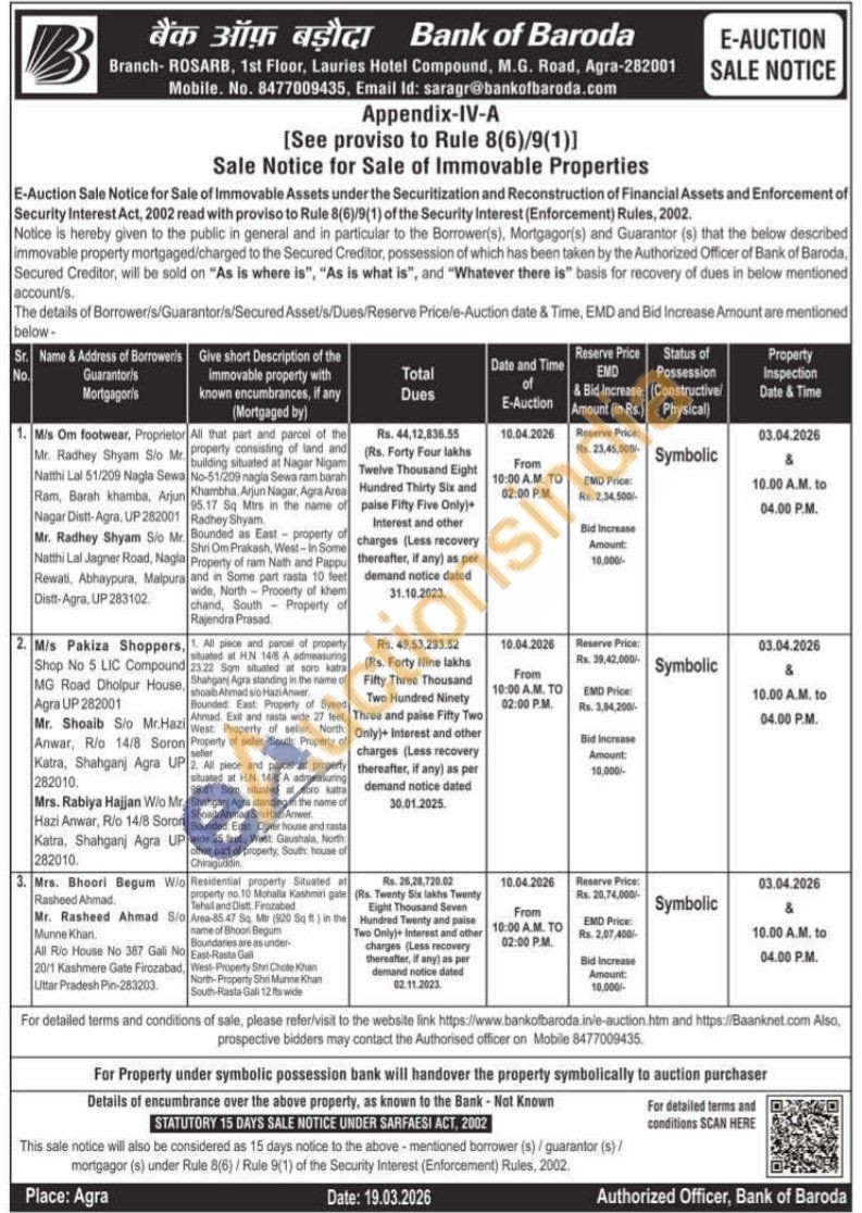 2. All piece and parcel of property situated at HN 14/8 A admeasuring 96.81 Som situated at soro katra Shahganj Agra standing in the name of Shoaib Ahmad S/o Hazi Anwer Bounded: East: Other house and rasta wide 25 feet, West Gaushala, North other part of property, South house