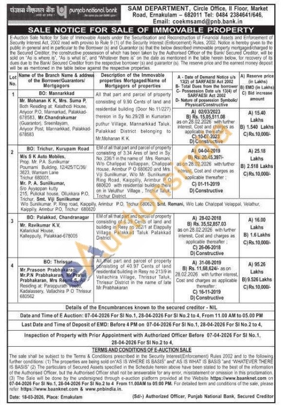 All that part and parcel of property consisting of 40.97 Cents of land residential building in Resy no 213/9 in Vallachira Village, Thrissur Taluk Thrissur District in the name of late Mr. Prabhakaran