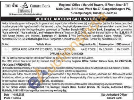 Tumkur Branch Sh. Gaurav Authorised Officer Mobile No : 9141193910