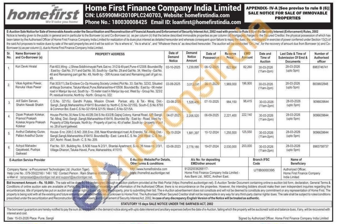 Flat-303(11), Sai Enclave Co-Op Housing Society Limited Plot No. 33, Gat No. 323/2, Situated at Mauje Somatne, Taluka Maval, Pune Maharashtra-410506. Bounded By: East by-06 meter road in Manjur lay-out, South by-15 meter road in Manjur lay-out, Viest by Group No. 323/2 Pt. residual income, North by North: Group no. 322