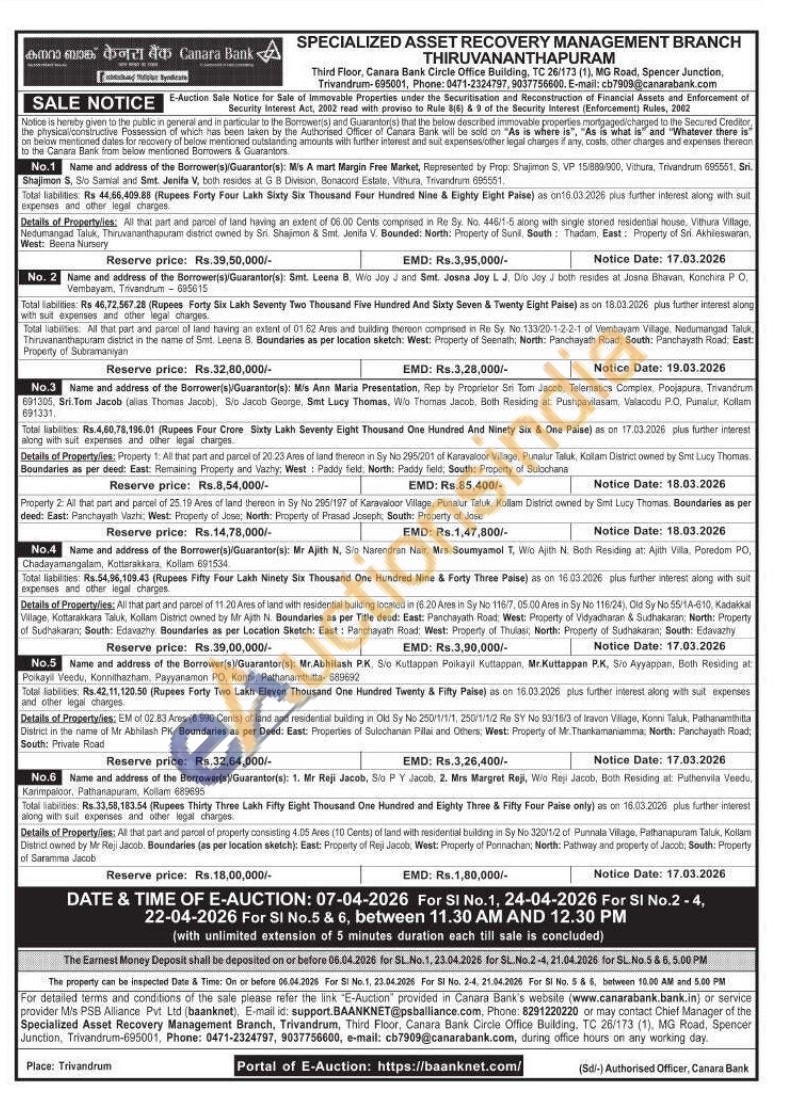 3) Property 2: All that part and parcel of 25 10 Ares of land thereon in Sy No 295/197 of Karavaloor Village Punalur Taluk Kollam District owned by Smt Lucy Thomas. Boundaries as per deed: East: Panchayat Vachs: West: Property of Jose North: Property of Prasad Joseph South: Property of Jose